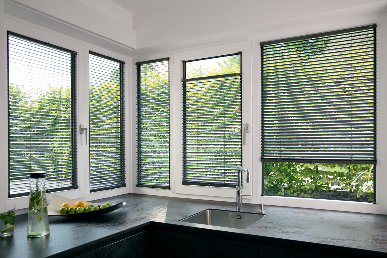 MHZ Horizontal-Jalousien sind aus Aluminium gefertigt und dadurch robust und widerstandsfähig. Sie eignen sich für jeden Raum sowie verschiedene Fenstergrößen und -Formen. In Feuchträumen wie Küchen und Bädern sind sie flexibel einsetzbar. Blendfreies Arbeiten am Bildschirm ermöglichen die Jalousien ebenfalls.